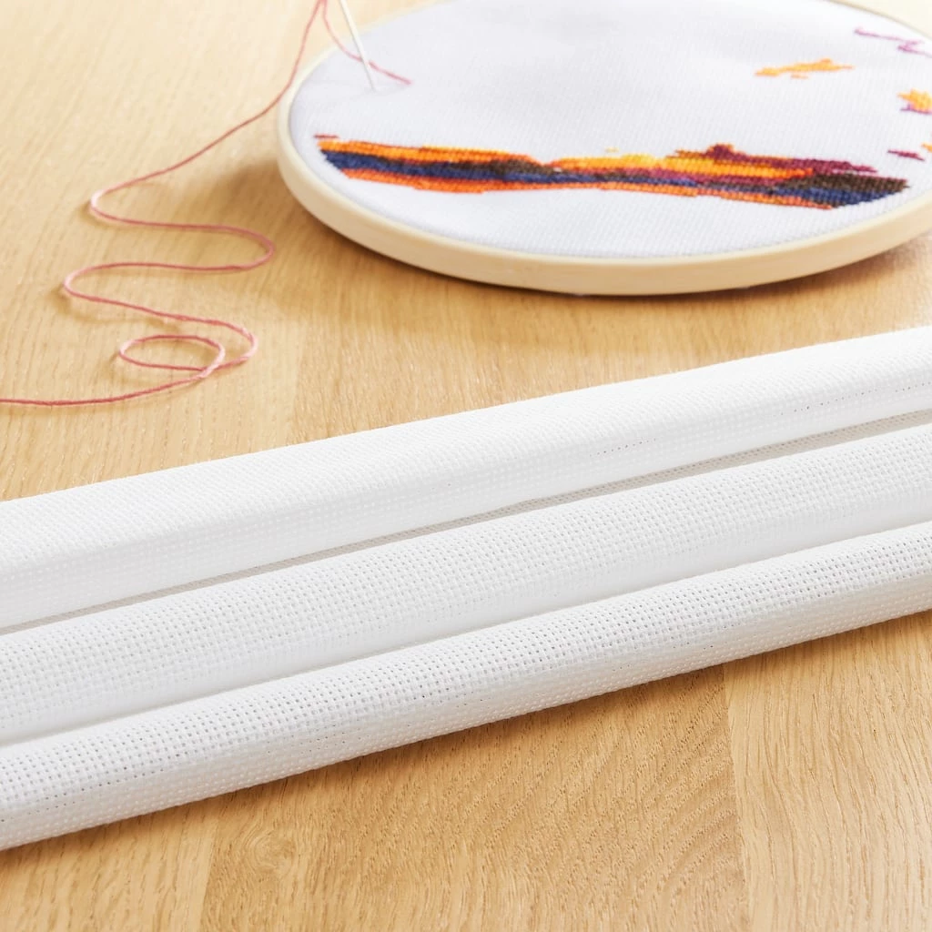 This fabric makes a perfect base for all of your cross stitch projects. Aida cloth is an open-weave, even-weave fabric used for cross-stitch embroidery. It has a natural mesh that facilitates cross-stitching and enough stiffness that the crafter doesn’t even need to use an embroidery hoop!
