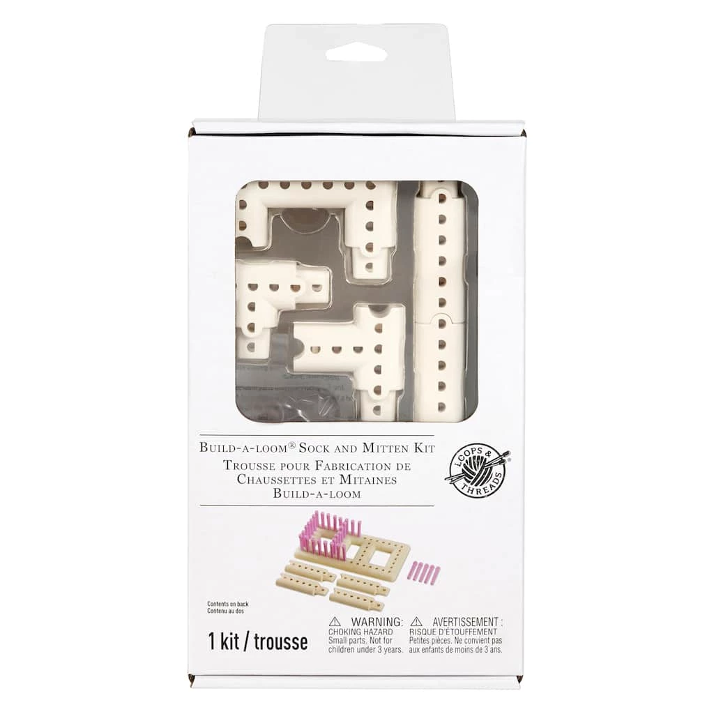 Build a loom that is perfect for to make socks and mittens with this kit by Loops and Threads. This loom kit has adjustable removable pegs in small or large gauge for knitting and weaving projects. Pegs can easily be removed to accommodate different weight yarn.