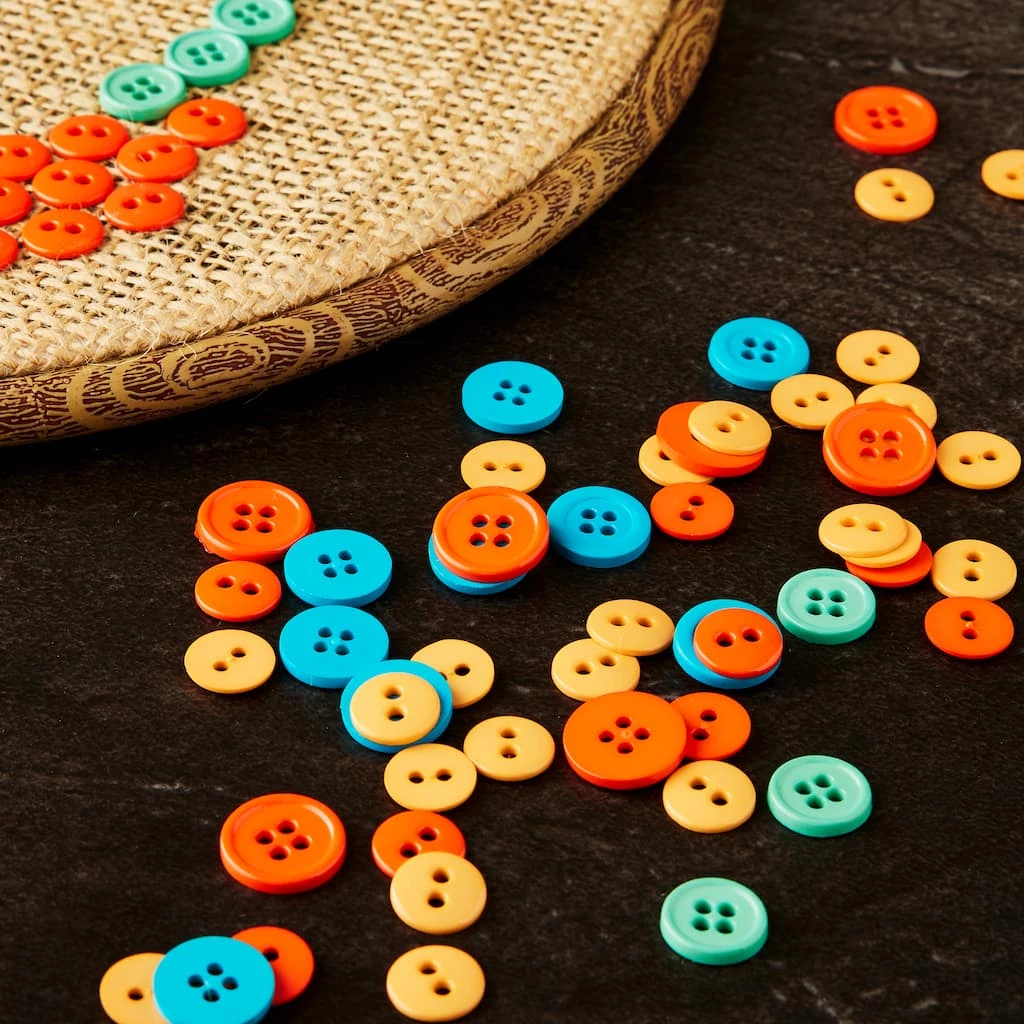 Decorate your fabric craft projects with these colorful buttons by Loops & Threads. Couple them with ribbons, trims, glitter and other embellishments to add visual flair.