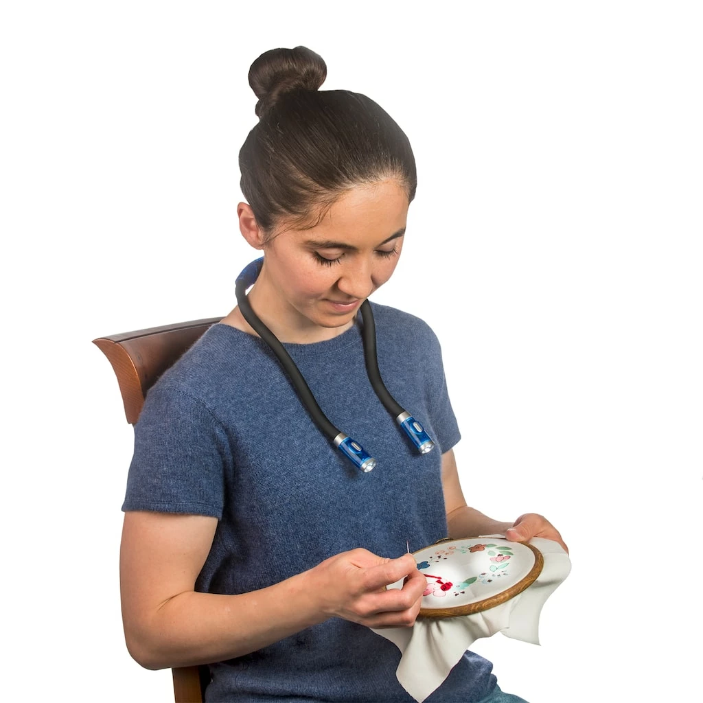 Use this LED light while reading, crafting, and working on hobbies, projects or tasks for a hands-free flex light. Simply place the light around your neck and adjust the lights to where you need to see.