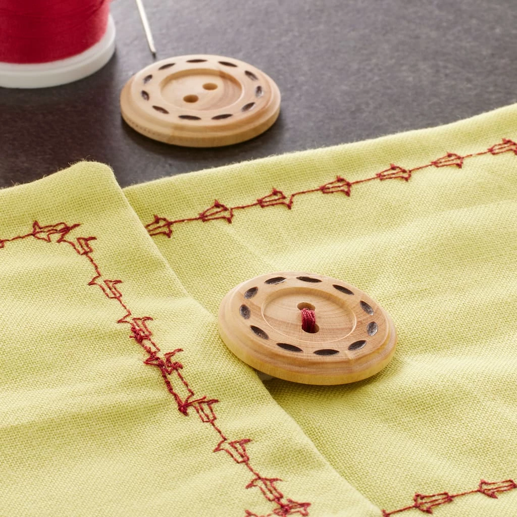 With a natural wood finish, these buttons by Loops & Threads are great for use on clothes and accessories. You can use these quirky buttons to accentuate baby beanies, booties, sweaters, cowls and more.